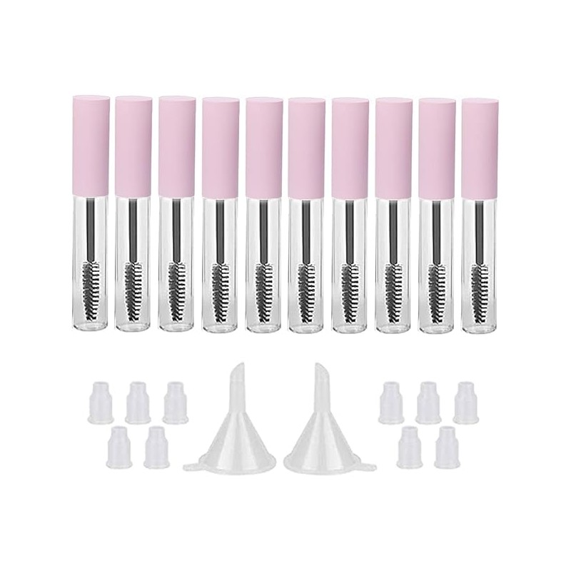 GTHER 10PCS 10ML Empty Mascara Tube Bottle With Eyelash Wand, Rubber Inserts & Funnels Set for Castor Oil/Growth Oil, DIY Cream Container With Cap, Matte Pink