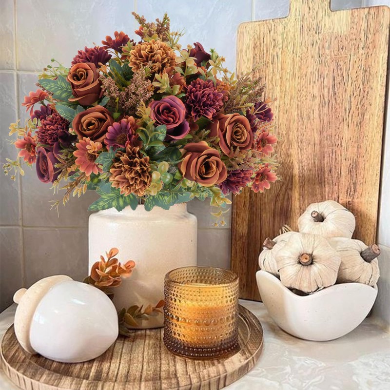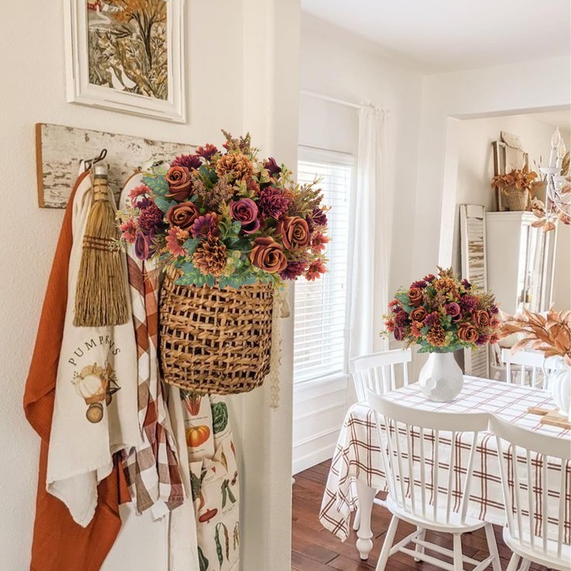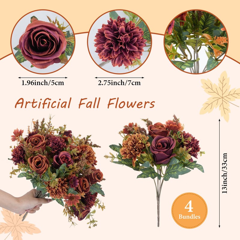 - More Uses: Fall silk flowers bunches are suitable for decorating vases, autumn garlands, fireplaces, living room, bedroom, bathroom, study, garden, balcony decoration, also can be used as anniversary and birthday gifts.
