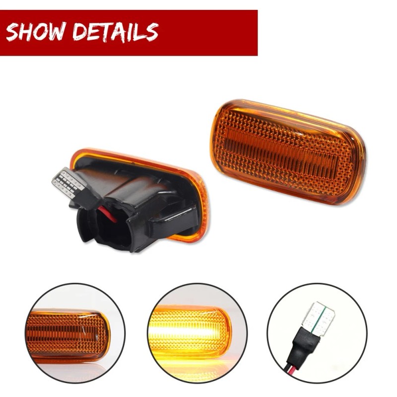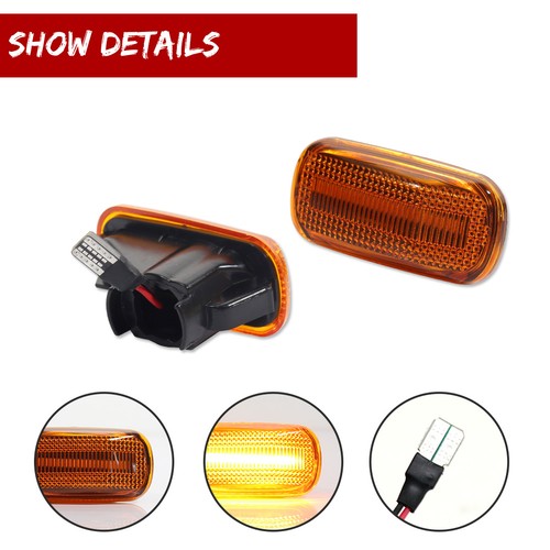 - This auction features one pair (2 pieces) of brand new amber lens LED front side marker lights w/ with sequential flash turn signal feature for following car models:
