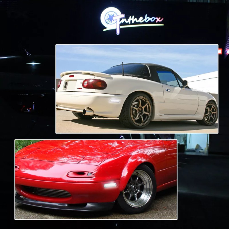 - This auction features one pair (2 pieces) of brand new clear lens white LED front sides marker lights PLUSone pair (2 pieces) of white LED rear side marker lights for 1990-1997 Mazda Miata &1999-2005 Mazda MX-5