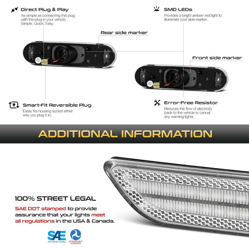 - These LED side marker lights are a great way to upgrade your car with superior lighting capabilities that looks great and is way safer.
