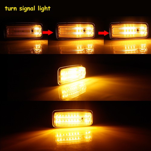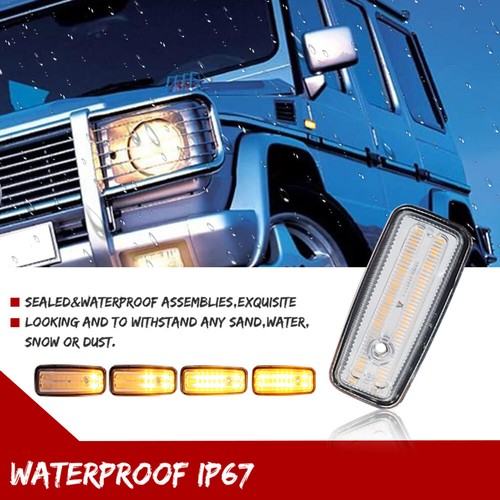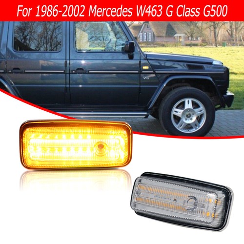 • This auction features one pair (2 pieces) of brand new clear lens LED front side marker lights w/ with sequential flash turn signal feature for 1986-2002 Mercedes W461 W463 G-Class G500 G550 G55 G63 G65