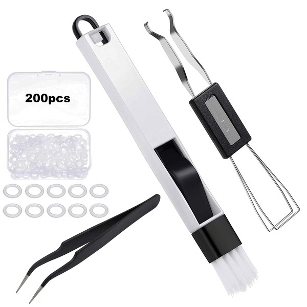 GTIWUNG キーキャッププーラークリーニングツールとゴム製Oリングサウンドダンパー キートップ引き抜き工具 メカニカルキーボード 2in1 メンテナンス工具 200 PCSラバーOリング 1個のクリーニングブラシ