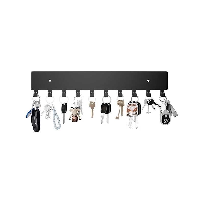 GTK Key Holder for Wall, Key Hooks with 10 Hooks, Wall Mounted Key Holder for Hallway, Self Adhesive Key Rack(Black)