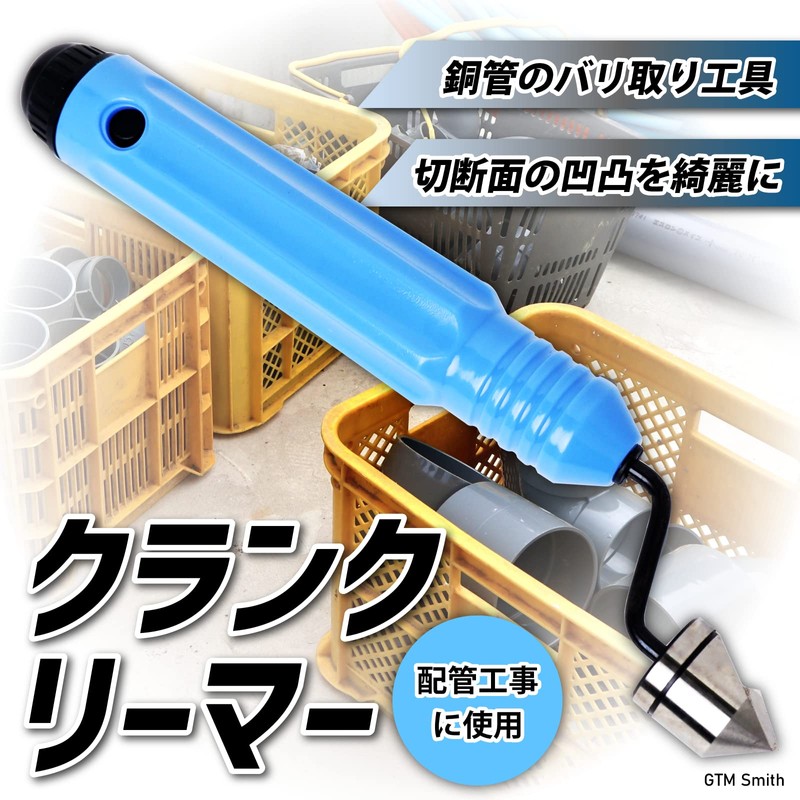 • Clan Creamer for Deburring: Handle-type deburring tool for removing burrs on cut surfaces of metal and copper pipes for plumbing work. Can be used for trimming flared cuts, or beveling other metal products