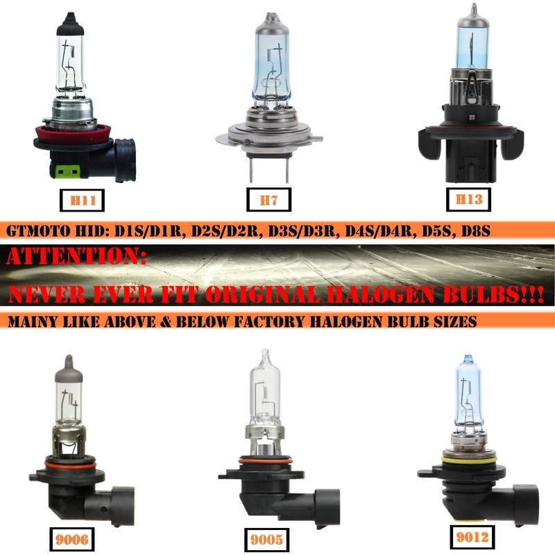 - Attention before buy: never ever fit factory original 55w H7/H11/H1 halogen bulb