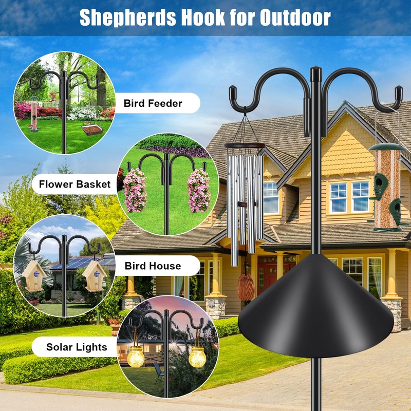 - 【PREMIUM QUALITY】The heavy duty steel make bird house pole not easy to bend and deform when encountering strong winds. Powder coated prevents rust effectively and makes it more durable. Retro shape and classic black look of the shepards hook outside add beauty and elegance to your garden. Simple design make the premium mental hooks easier to integrate into the garden scene, and can be match with more hanging items.