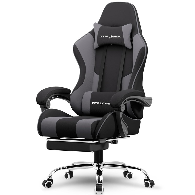 GTPLAYER Gaming Chair, Computer Chair with Footrest and Lumbar Support, Height Adjustable Game Chair with 360°-Swivel Seat and Headrest and for Office or Gaming (Darkgray, Fabric)