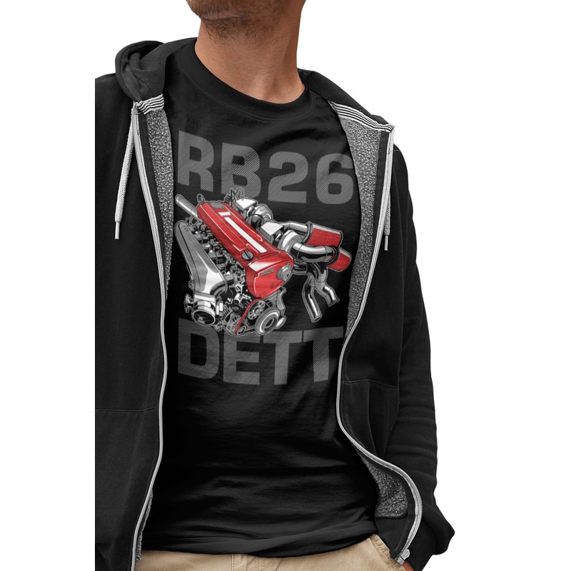 GTR Skyline R32 R33 R34 R35 Import Japanese Racing T-Shirt | Large - RB26 DETT Engine