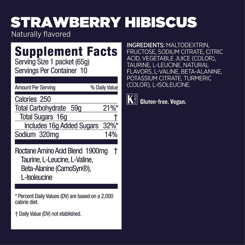 Gu Energy Roctane Ultra Endurance Energy Drink Mix, 10 Single Serve Travel Size Packets, Strawberry Hibiscus