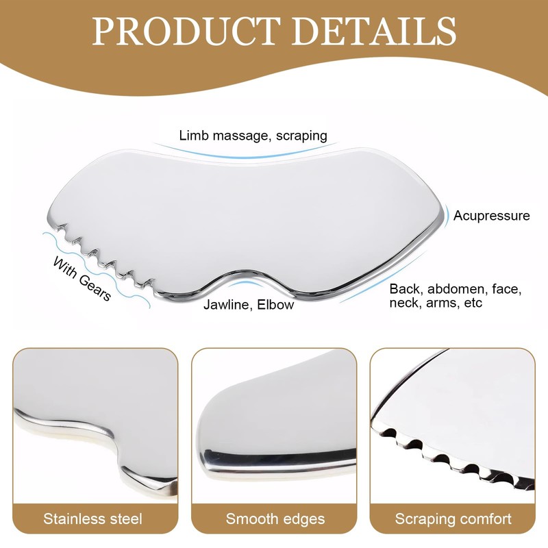 - 🤍【Gua Sha Massagegerät】 Hergestellt aus hochwertigem Edelstahl, sicher und unbedenklich. Die Textur ist klar, feucht und glatt. Im Gegensatz zu Steinmaterial ist es absolut bruchsicher.