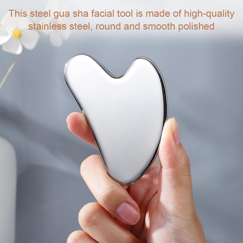 - 💖 STAINLESS STEEL SCRAPER This steel gua sha face tool is made of high quality stainless steel, polished round and smooth and will not harm your skin.