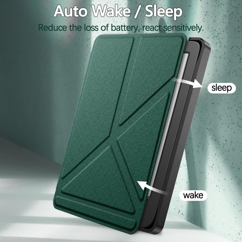 - [ Auto wake / sleep ]: Magnetic back and front secure the case closure, automatically wake your tablet when the lid is opened, and put it into sleep when closed. easy snap on and off.