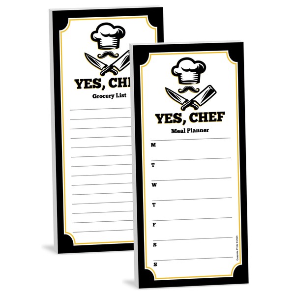 Guajolote Prints Funny Yes Chef Meal Planner and Grocery List, Magnetic, 3.75 x 8 inch, 50 Sheets (2 Items)