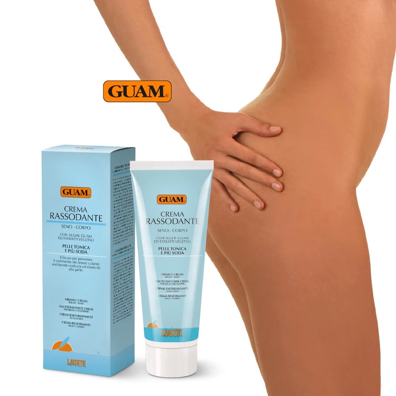 - GUAM cream tightens, thanks to the effectiveness of algae guam in synergy with the natural beech extracts and ivy, tightens, shapes and makes the skin, elastic, preventing the formation of stretch marks and sagging of the tissues. For the following aesthetic procedures, during and after diets, bodice pants and pregnancy