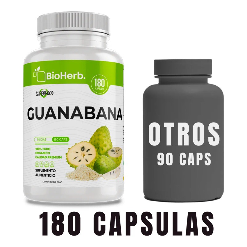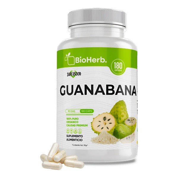Guanábana Extracto 100% Puro Bioherb 180 Capsulas De 500mg
