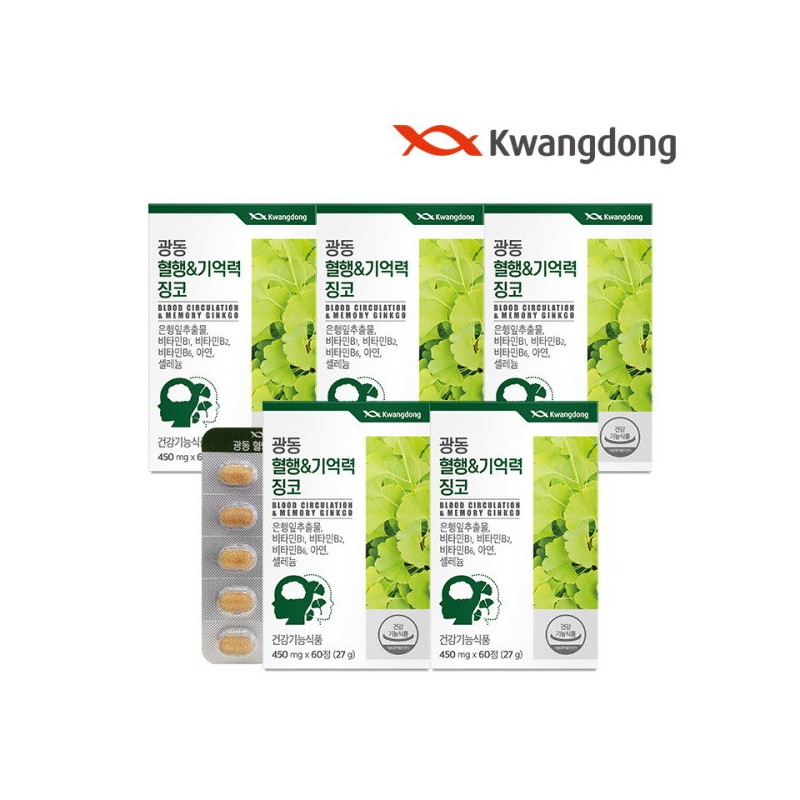 [Guangdong Life Health] Blood circulation & memory improvement Ginkgo 60 tablets, 5 boxes (10 months supply) / Ginkgo leaf extract