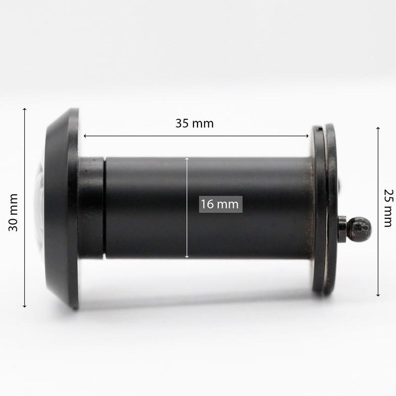 - Peephole Dimensions: Front Eye Diameter: 1.18 in(30mm); Tube Diameter: 0.63 in(16mm); Back Cover: 0.98 in(25mm)