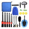 - [18-teiliges Auto-Reinigungsset] - Enthält 5 Detaillierungsbürsten in verschiedenen Größen, 3 Drahtbürsten, 3 Wachsapplikatorpads, 1 Reifenbürste, 1 Radbürste, 1 Staubbürste, 1 Auto-Eisschieber, 1 Autowaschhandschuh, 1 Reinigungstuch, 1 Klimaanlage Bürste.