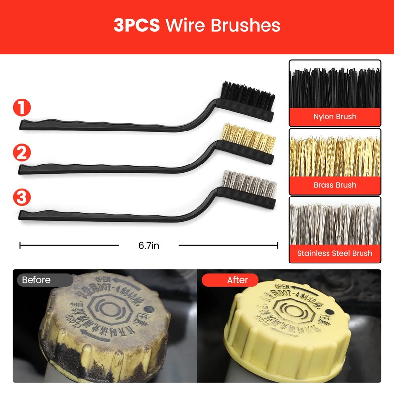 - [Zuverlässige Werkzeuge] - Das Reinigen von Straßenschmutz und Bremsstaub von den Rädern Ihres Autos kann eine schwierige Aufgabe sein, aber unsere Autoradbürste macht es einfach. Es ist so konzipiert, dass es jeden Winkel und jede Ritze erreicht, einschließlich schwer zugänglicher Stellen wie Rotoren, Speichen, Radläufe und Bremssättel. Mit einer Kombination aus Messing-, Edelstahl- und Nylonborsten ist diese Bürste robust genug, um selbst den hartnäckigsten Rost und Schmutz zu entfernen. Es ist ein langlebiges und zuverlässiges Werkzeug, das die Räder Ihres Autos wieder wie neu aussehen lässt.