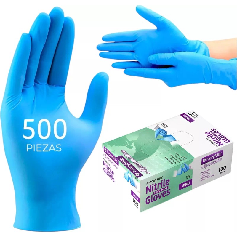 Guantes de Nitrilo | Libres de Látex y Sin Polvo | Colores Azul y Negro | Paquete de 500 Piezas
