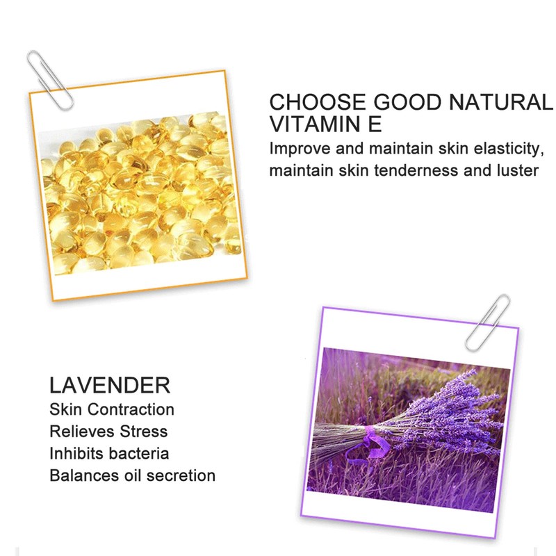 - 【Nutrición de la piel】: nutre y cuida profundamente la piel, el padrastro, se desvanece la línea fina. Rico en lavanda, equilibra la secreción de aceite, reafirma la piel y alivia el estrés.