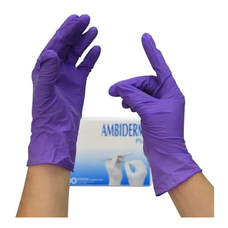 Guantes descartables Ambiderm Plus color violeta talle P de látex con polvo x 100 unidades