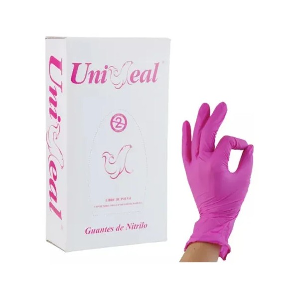 Guantes descartables antideslizantes UniSeal 3.5 grs color rosa talle M de nitrilo x 100 unidades