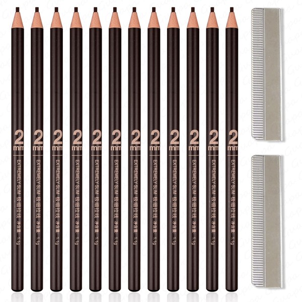 Guapa 12Pcs Slim Eyebrow Pencil with Brush – 2mm Fine Tip Hair-Like Brow Penc...