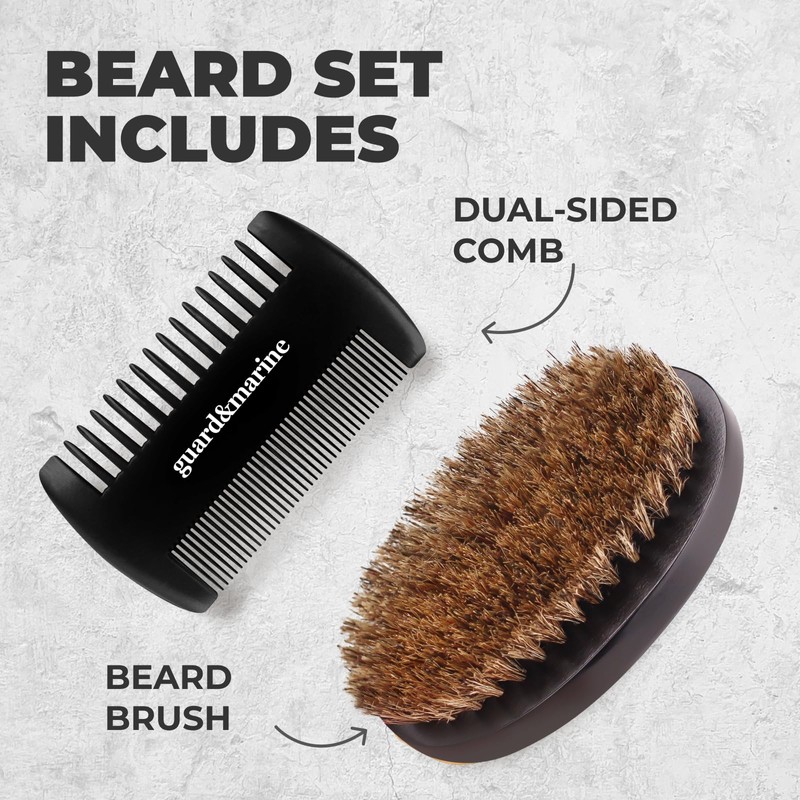 - ULTIMATE BEARD GROOMING SET: Elevate your beard game with our GUARD&MARINE Beard Brush & Comb Set. This kit is meticulously crafted for the modern man's beard care and shaping needs.