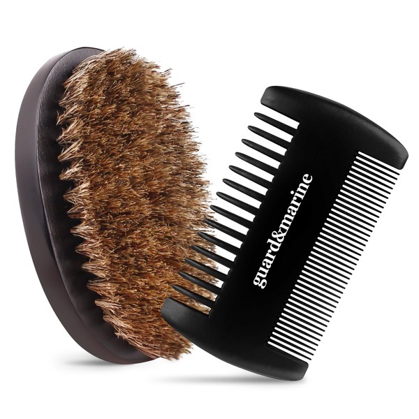 GUARD&MARINE Beard Brush & Comb Set - Natural Boar Bristle Wooden Brush & Beechwood Comb Kit for Men's Beard and Mustache Care and Shaping (Black)