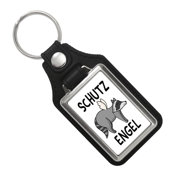 Guardian Angel Raccoon Keyring with Faux Leather Pendant Funny Pendant for Key Chain as a Gift for Beginners Who Can Use a Watch Well, artificial leather