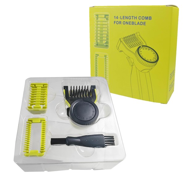 - Compatible with oneblade trimmers , includes 1*14-length adjustable guard,1*skinguard,1*body comb,1*dual-sided cleaning brush,fit for oneblade Qp2520 Qp2530 Qp2620 Qp2630