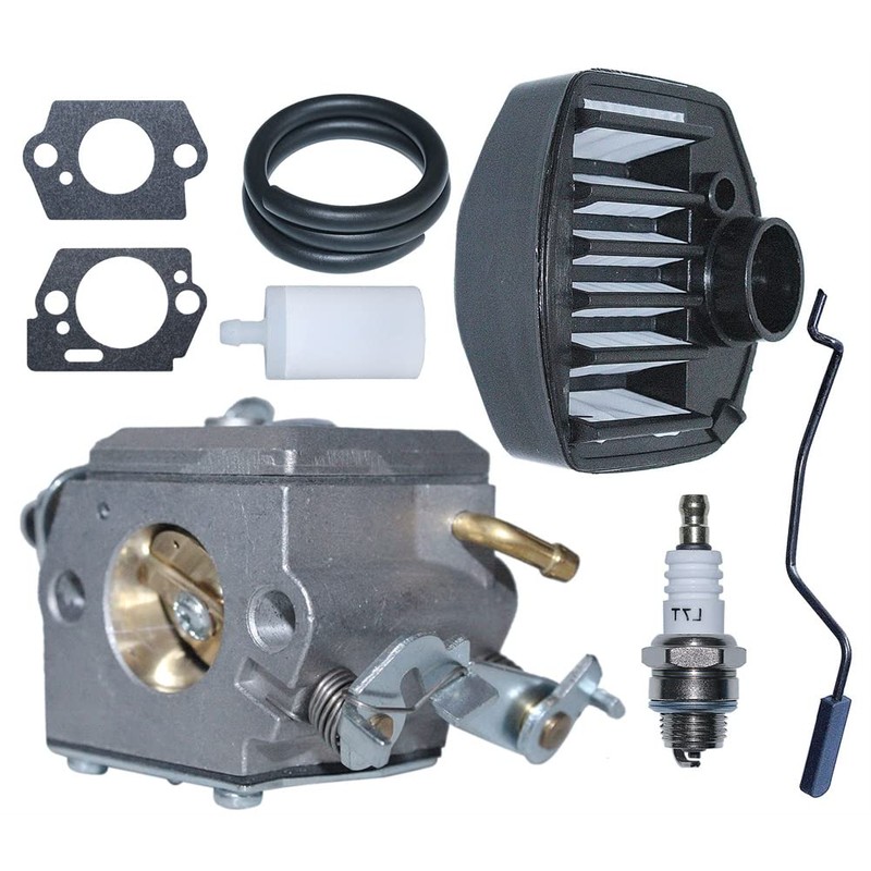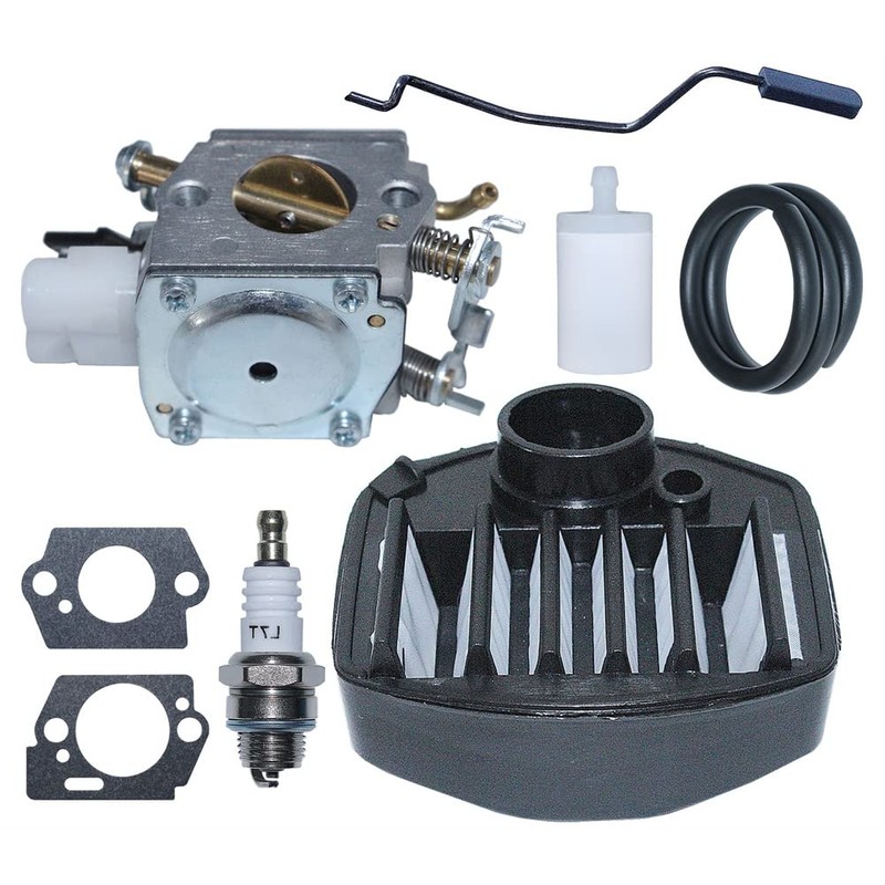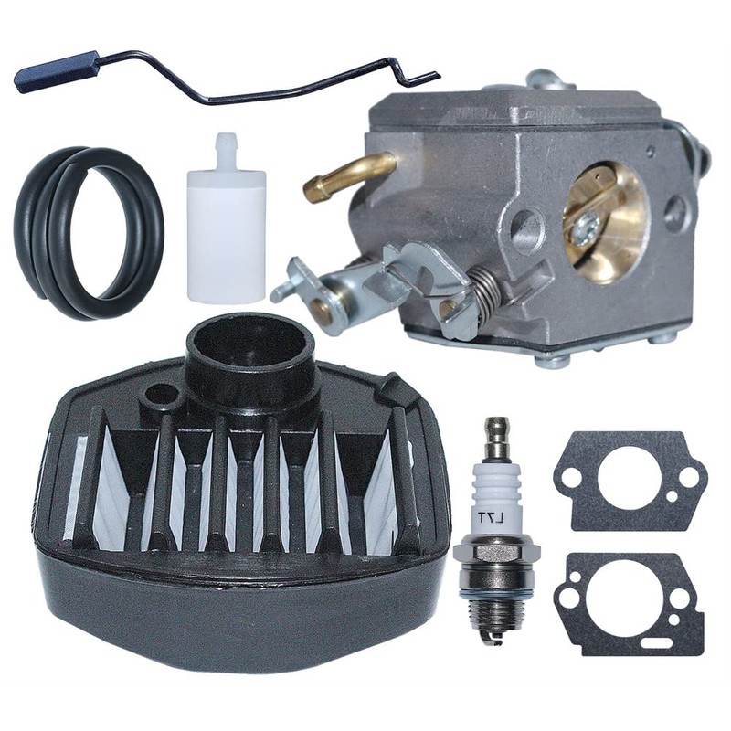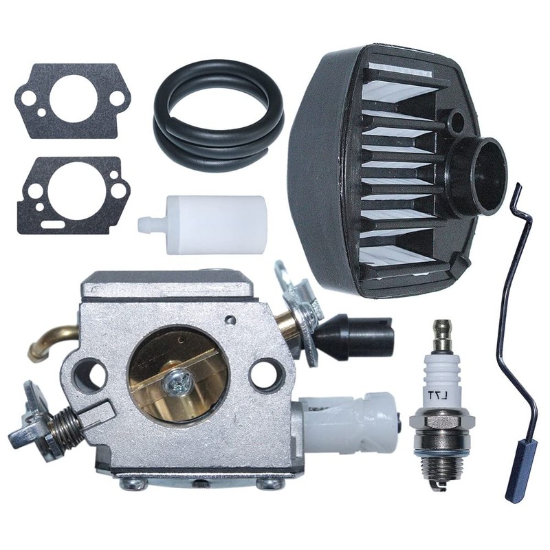 - What you get: 1 x carburettor, 1 x air filter, 1 x fuel filter, 1 x throttle, 1 x spark plug, 1 x fuel line, 2 x carburettor gasket. ,