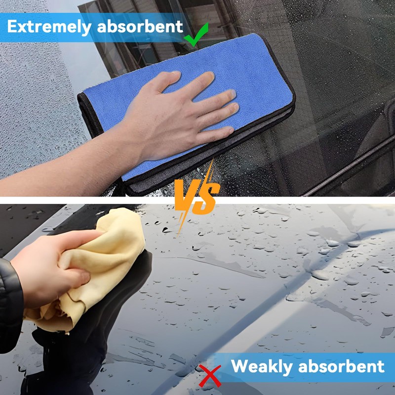 - Extra water absorption: Compared to cotton fibres, 500 g/m² superfine fibres have more pores and a larger surface area of superfine fibre filaments, lint-free polishing cloths car has a high water absorption rate, which helps to absorb water and other liquids immediately. Perfect drying towel after car wash in wash box, can also be used after washing dishes or as a kitchen towel.