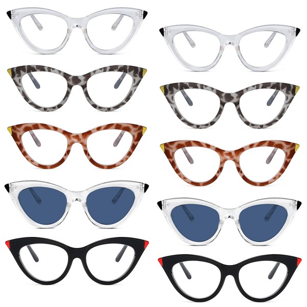 - What You Get - 10 Pack readers in 5 different colors(8 Pairs Reading Glasses & 2 Pairs Reading Sunglasses), with free return and exchange service for damage items, and friendly customer service.