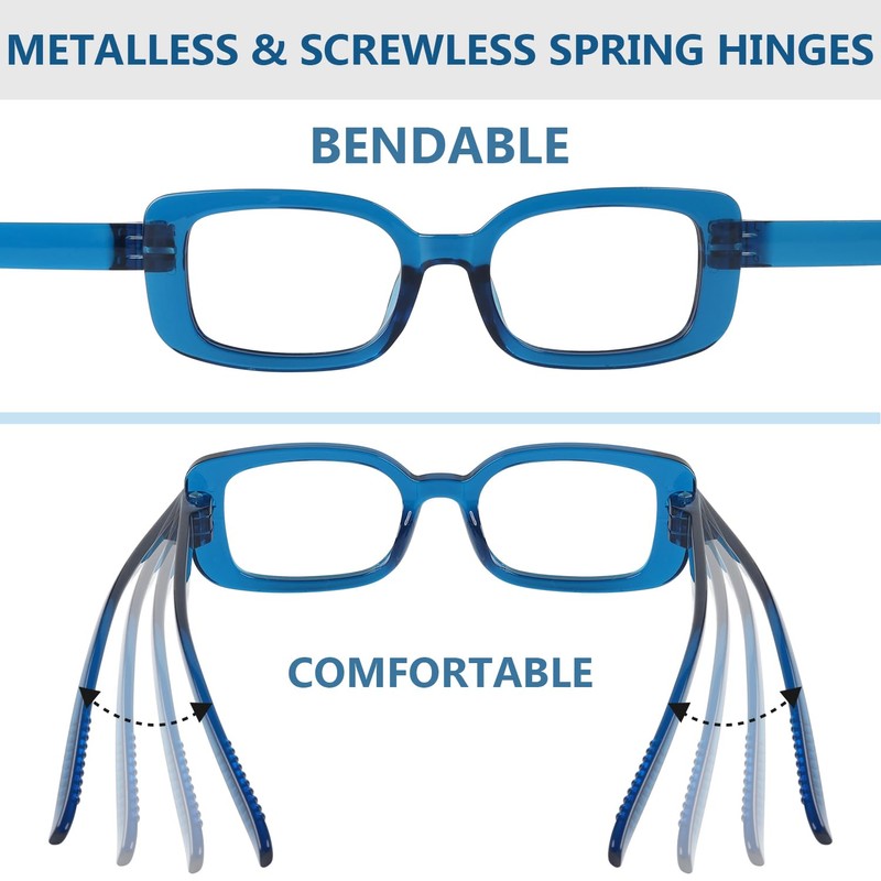 - COMFORTABLE - The spring hinges provide just right elasticity when the temples open outwards to both sides, which makes the reading eyeglasses comfortable.