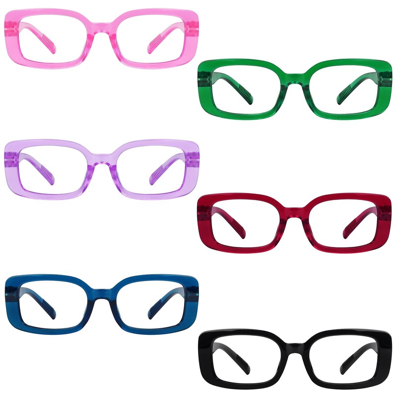 - UNIQUE DESIGN - 6 pack thick rectangular frames magnifying glasses for wide face in different colors, which show your unique personality.