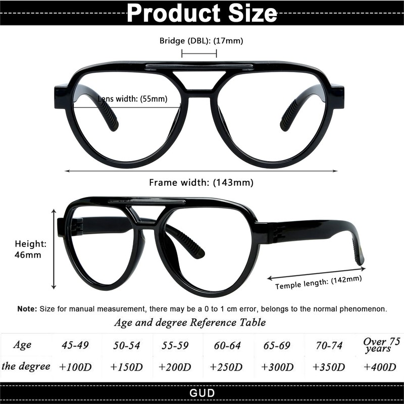 GUD Pilot Reading Glasses with Screwless Spring Hinges Metalless Women 6 Pack Oversized Stylish Readers Double Bridge +1.25
