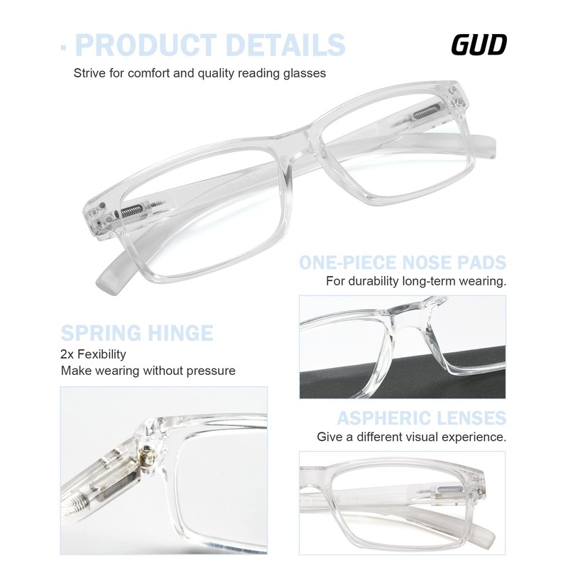 GUD Reading Glasses 5-Pack Readers Spring Hinge Reading Eyeglasses for Men Women +3.50