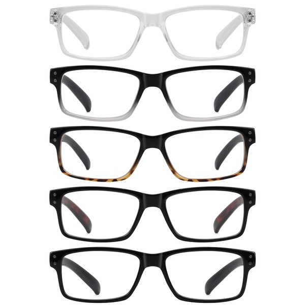 - COMFORTABLE TO WEAR - 5 pairs of spectacles, The flexible nature of the spring hinge temples makes the frame more durable and fits your face shape.Precise amplified intensity keeps tiredness away from you.