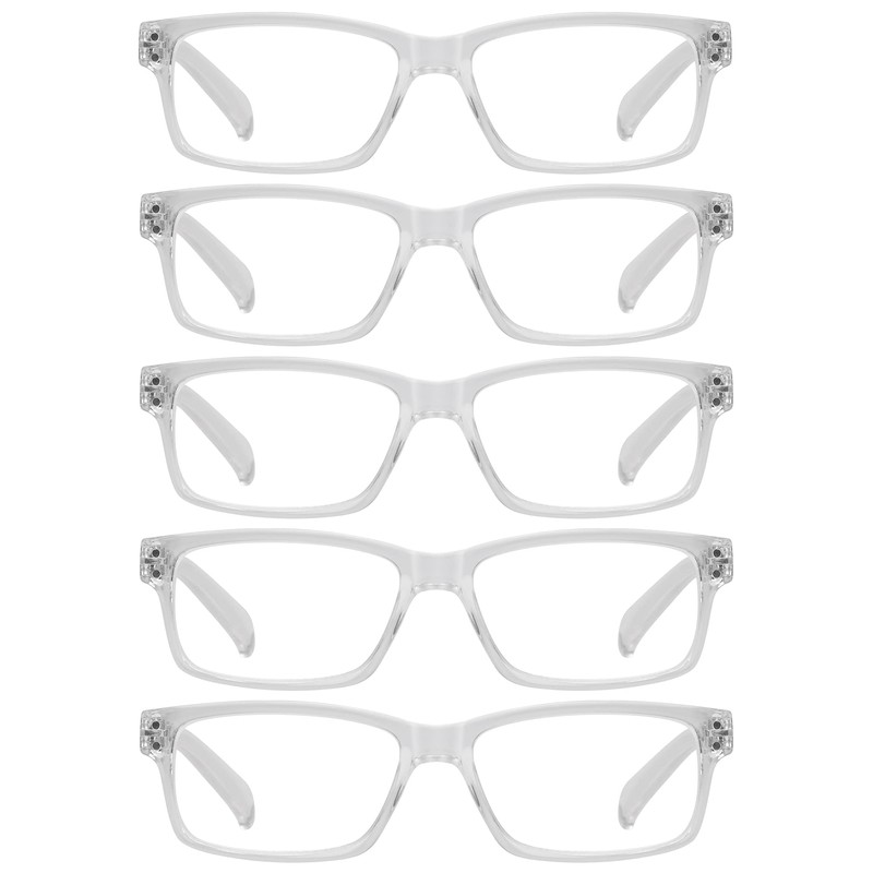 GUD Reading Glasses 5-Pack Readers Spring Hinge Reading Eyeglasses for Men Women (Clear Frame, 2.75)