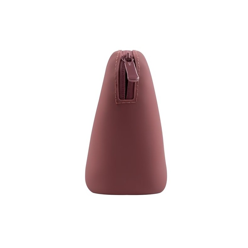 Gudahower Silicone makeup bag soft and can be rolled up and folded for storing cosmetics and toiletries during travel zipper closure for both men and women (wine red)