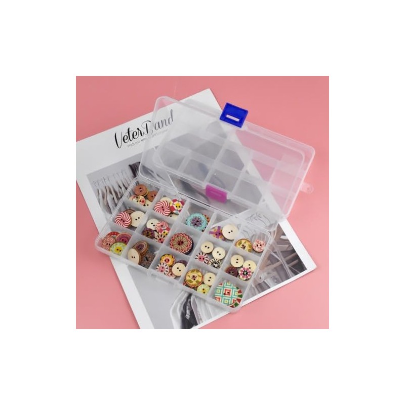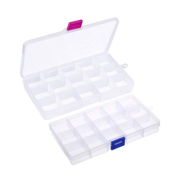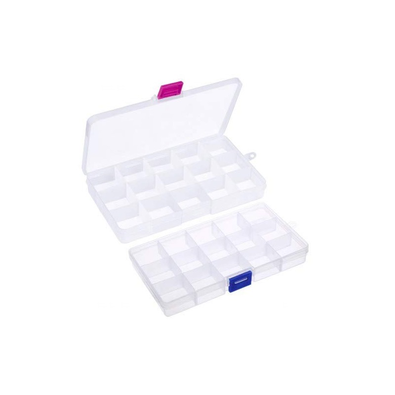 - Visible: transparent plastic box for more efficient storage, stain resistant material, easy to clean. The package includes two storage containers, one with red closure and one with blue closure, each box has 15 compartments.