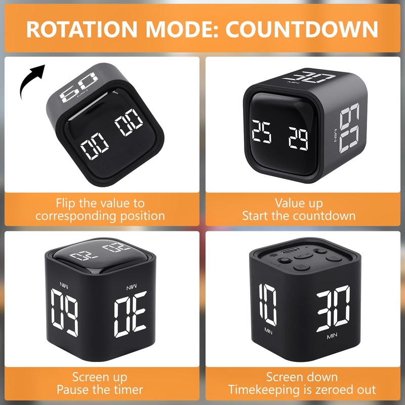 - 2 Modes Timer: In gravity-sensing mode, flip the corresponding timing value, and the countdown starts when the value is facing up; manual mode allows you to set the countup/down by pressing the button, and the maximum timer for manual mode is 99 minutes and 59 seconds. You can choose the mode freely according to your needs.