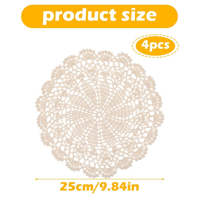 • 【Size】Each lace doilies is 27 cm/10.6 inches in diameter. Due to the hand-crocheted process, the size varies slightly, which is very suitable for furniture decoration