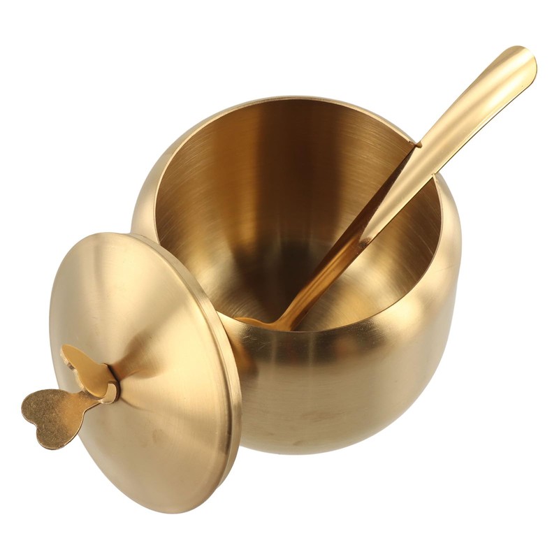 GUEDKIKL 250ML Stainless Steel Sugar Bowl with Butterfly-Shaped Lid and Spoon, Condiment Pot Spice Containers Seasoning Jar Salt and Pepper Dispenser Bottle for Home Kitchen