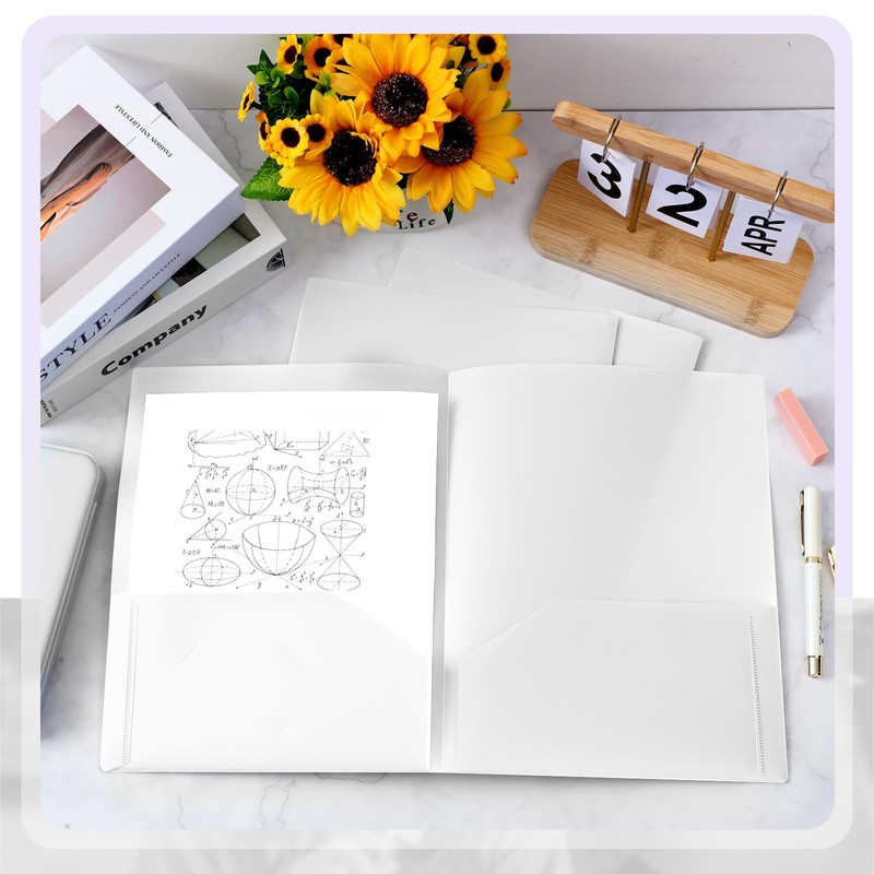 - Enough Quantity to Use and Replace: you will receive 150 pieces white plastic folders, each is designed with 2 pockets, fitting 8.5 x 11 inch letter size paper; Each pocket can stack 50 pages of letter size paper easily and neatly
