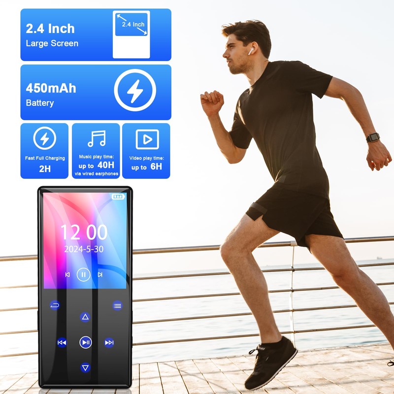 - Long battery life: this Bluetooth MP3 player with up to 40 hours of high-quality lossless music and fast 2-hour charging, weighing only 85 grams, its compact and lightweight design, is your perfect musical companion for long commuting distances and travel. A best gift for music lovers, children, family during sports and travel.