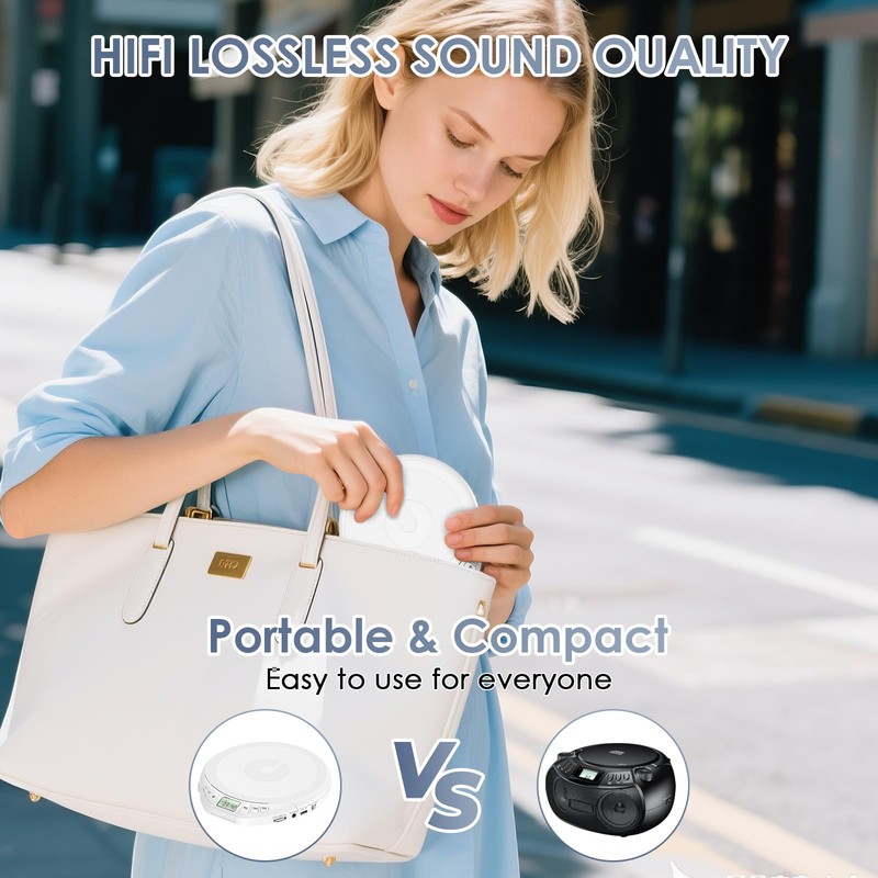 • CD Player Portable: The Gueray portable CD player comes in classic black with a unique note logo design and is equipped with a professional, intelligent chip for digital noise reduction that ensures a high-quality sound experience. Under the premise of ensuring the ultimate pursuit of music, a thin and lightweight housing has been designed to enhance portability and impressive experience.